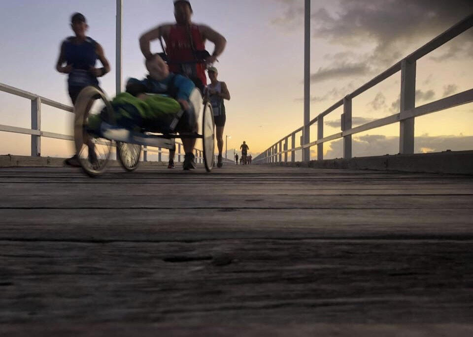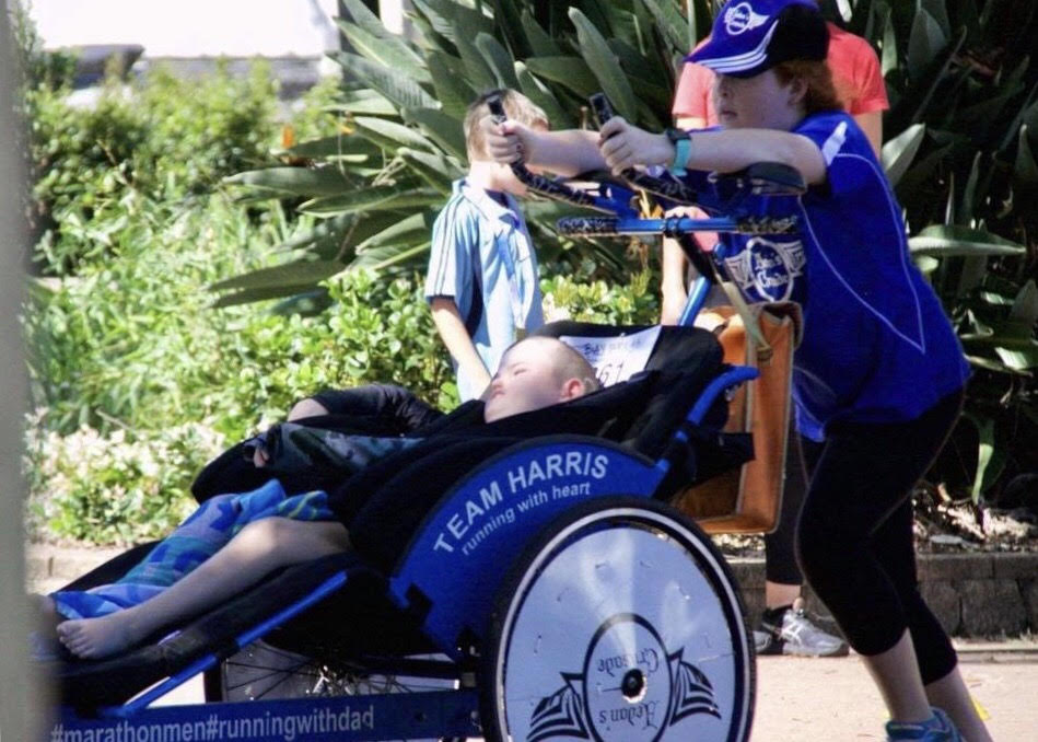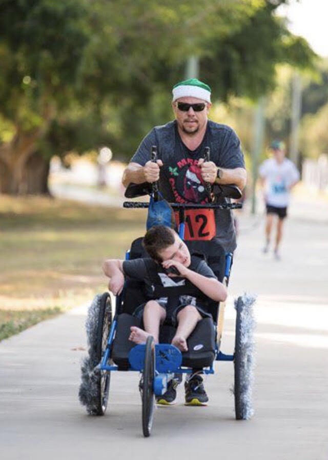 Aedan’s Crusade began as a Charity for us to fund equipment and therapies for Aedan who has Spastic Quadriplegia Cerebral Palsy. Little did we know it would start us on an amazing running journey. It is now a platform to share our families running adventures, and promote inclusion for Aedan, and encouraging others to get out and have a go. In 2014 Cameron (Aedan’s dad) decided he would run, he completed his first 8km event. He then said I’m going to run a marathon, which he did the following year. Just like that, we became a running family. Aedan would often ask to go for a run with him, we used our beach chair initially and so began their partnership.