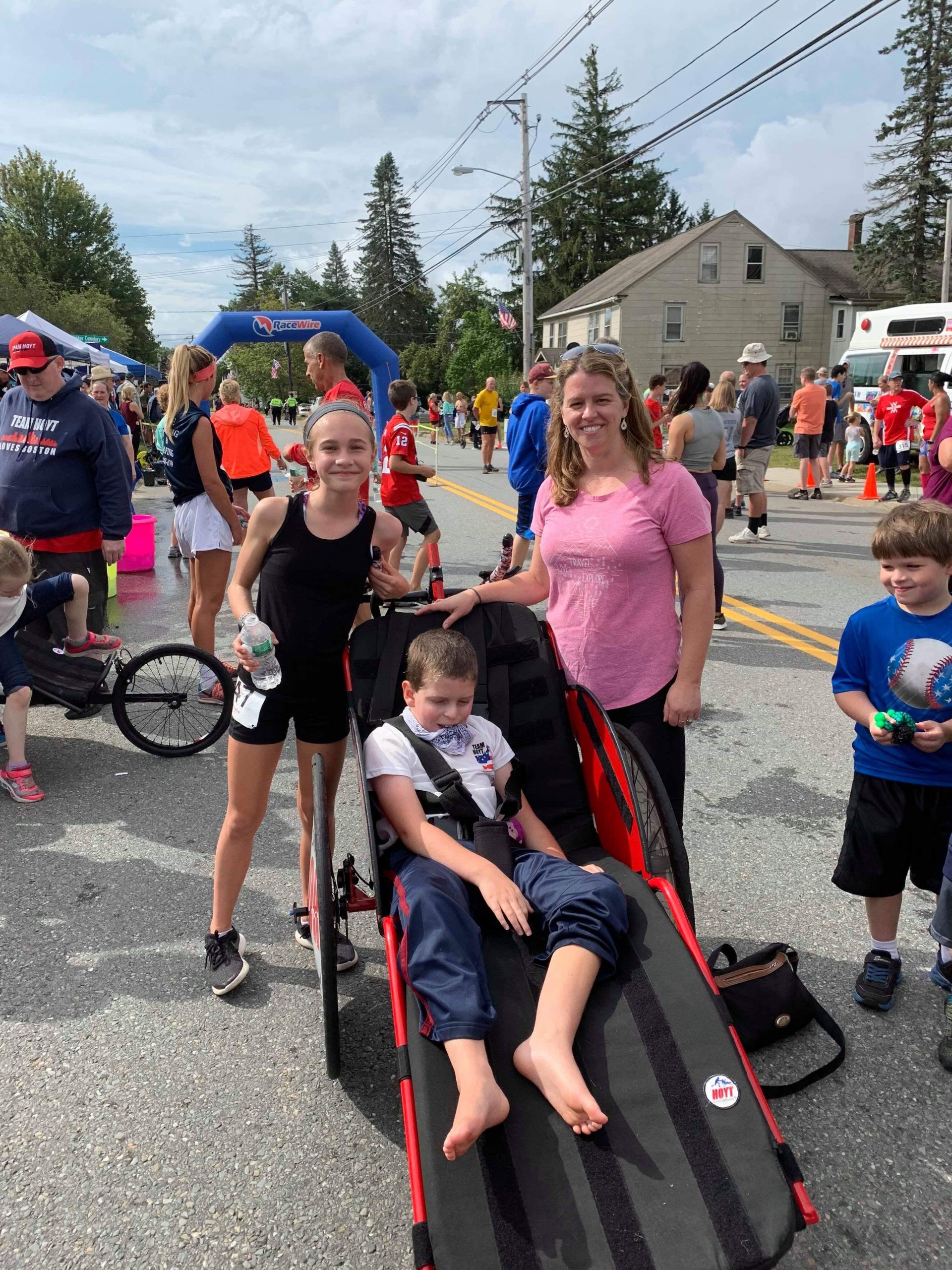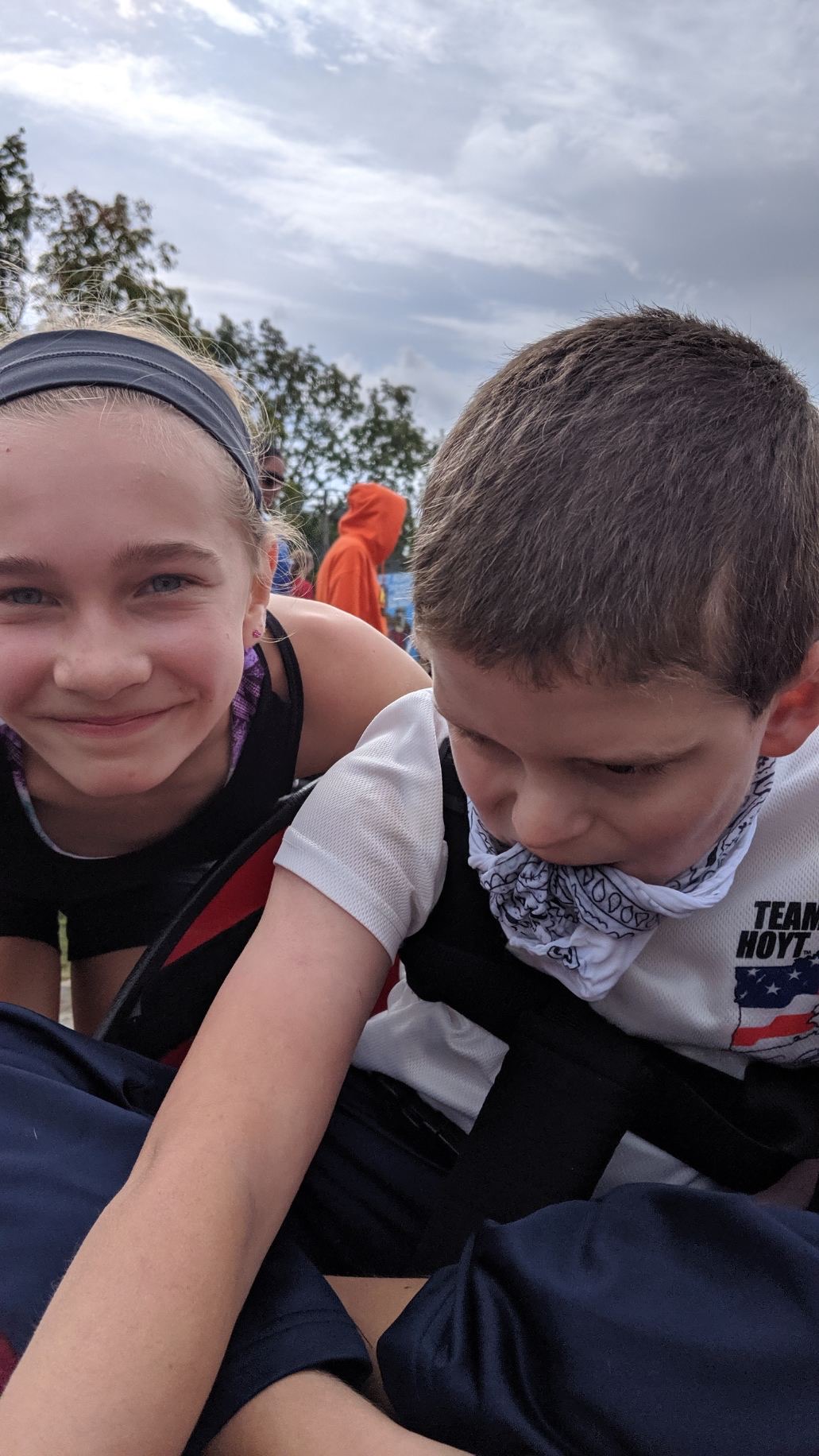 The rest is history! I spent the summer practicing pushing a borrowed Team Hoyt Blade. I started with strength training, then advanced to pushing my (patient!) sister in the chair for practice. Finally, I felt ready to practice with Joshua. We both LOVED racing together!